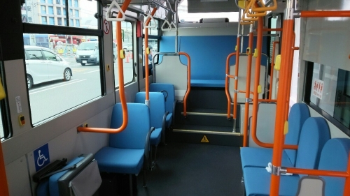 駐車場内を走行すること、慢性的に渋滞が生じている運行ルートであることを考慮して、中型バスを選択しました。