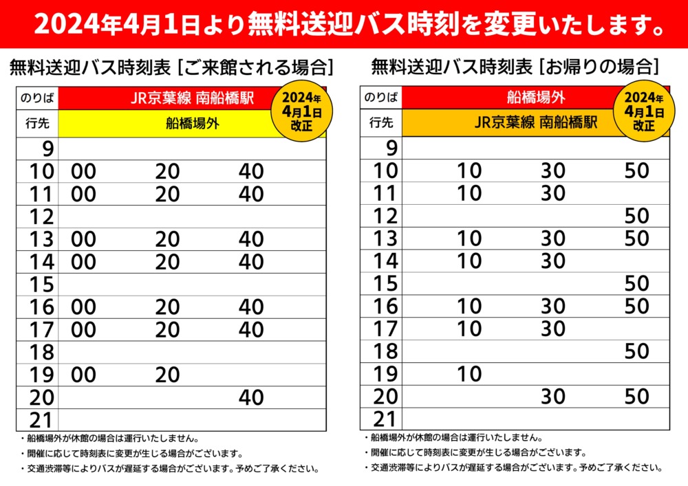 JR京葉線の南船橋駅から送迎バスを運行しております。