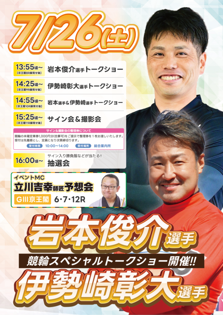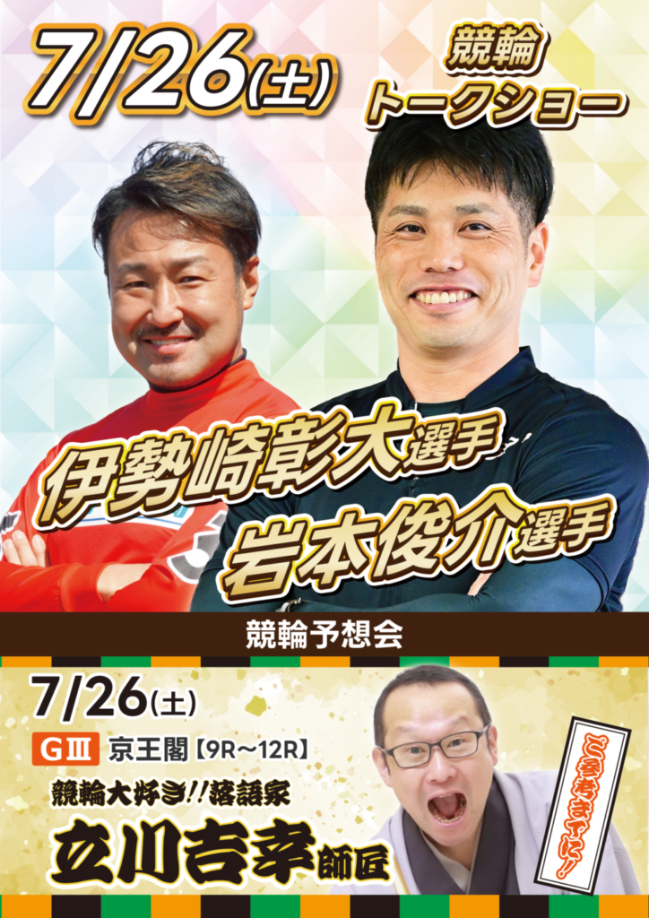 【7/26(土)_競輪スペシャルトークショー】岩本俊介選手、伊勢崎彰大選手
