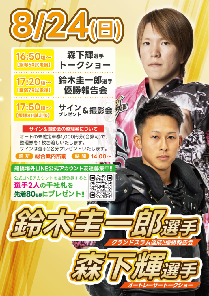 【8/24】森下輝選手トークショー&鈴木圭一郎選手優勝報告会も同時開催!!!