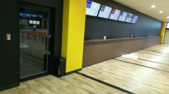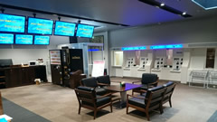 観覧席166席、立見エリアに設置されている110インチ大型モニターで迫力あるレース映像をお楽しみいただけます。